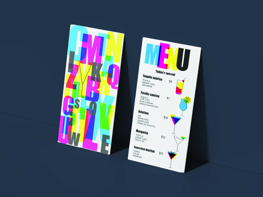 מיתוג עסק דמיוני לבחירתנו. בחרתי למתג בר הממוקם במבנה של בית דפוס ישן. השם והשפה הגרפית שואבים השראה מעולם הדפוס והריזוגרף, עם צבעוניות עזה, מרקמים מדורגים ואסתטיקה מודפסת שמעניקים למותג אופי אורבני וייחודי.